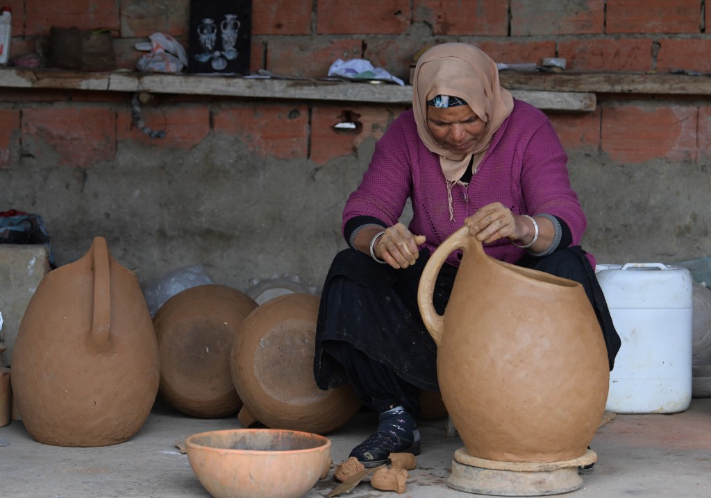The pottery skills of the women of Sejnane relate to the practice of using a specific technique to produce terracotta artefacts for the home, including cooking utensils, dolls and animal figurines inspired by the environment. All stages of the pottery-making process are performed by women, who also sell the pots in the village and by the side of neighbouring roads; women therefore occupy a prominent place in the community.