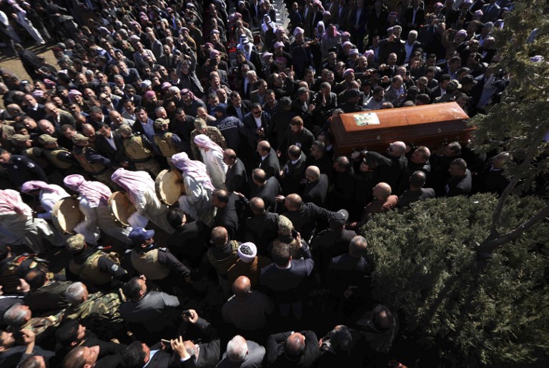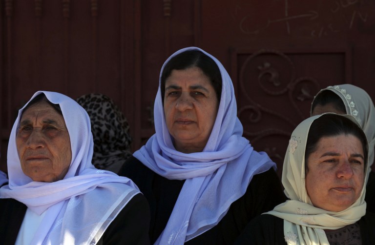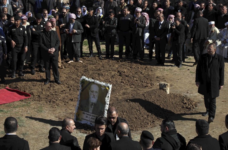 Iraq's Yazidis attend the funeral of Mir Takhsin-Beg (Tahseen Said Ali), hereditary leader of the Yazidi community in the world, in the town of Sheikhan.