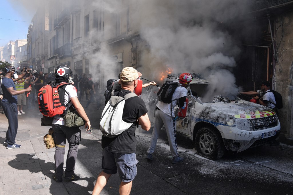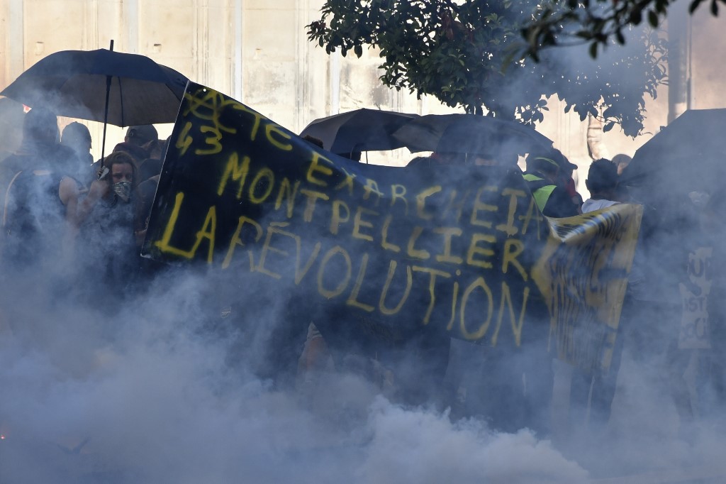 France police announced that about 1,500 protesters have gathered in the southern city of Montpellier as they set a police car on fire. However, officers used tear gas to try to disperse the crowd.