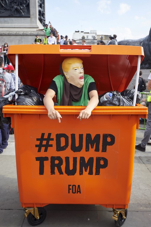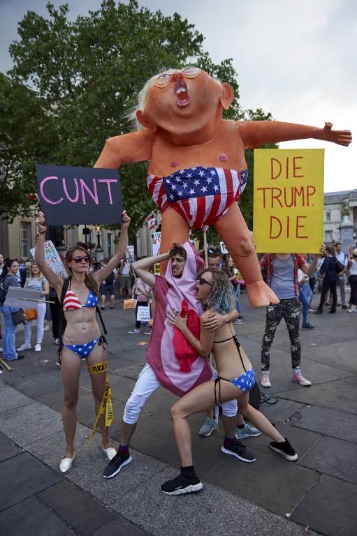 Protesters against the UK visit of US President Donald Trump gather in Trafalgar Square after taking part in a march in London on July 13, 2018. (Niklas HALLEN / AFP)