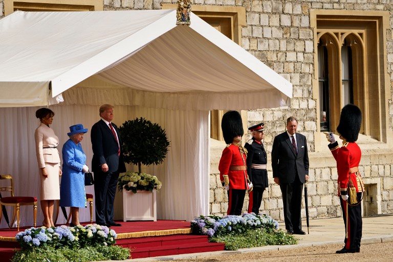 Britain's Queen Elizabeth II stands with US President Donald Trump and US First Lady Melania Trump on their arrival at Windsor Castle in Windsor, west of London, on July 13, 2018 on the second day of Trump's UK visit. (Brendan Smialowski / AFP)