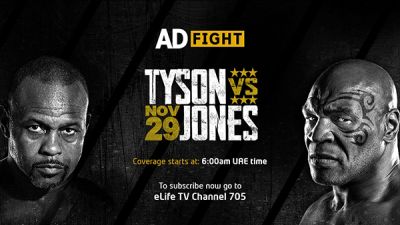 As part of the official channel launch, the boxing match between legends Mike Tyson and Roy Jones Jr will be telecast on Sunday, November 29, with full coverage starting at 6 am and the main fight expected to start at 8 am (UAE time).