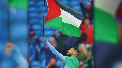 Support for Palestine in international sports events continued, this time with Manchester City’s Algerian winger Riyad Mahrez carrying a Palestinian flag on the pitch after a Premier League fixture.